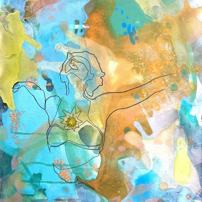 Zurück zur Verbundenheit. Dieses Thema zieht sich wie ein roter Faden durch die Arbeiten meiner letzten Jahre. Stilistisch zeigt sich dieser Aspekt insbesondere in der Einlinien-Zeichnung und der Art, wie sie sich mit dem Hintergrund meiner Werke verbindet.