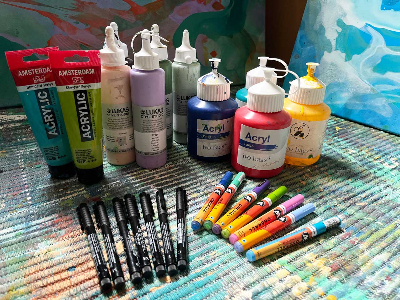 Für meine Hintergründe nutze ich hochwertige Acrylfarben, die aus lichtechten Künstlerpigmenten bestehen und umweltfreundlich sind.