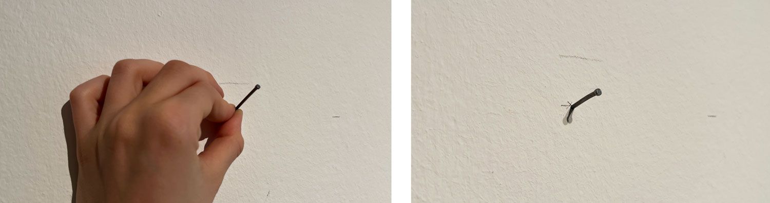 Bei breiteren Werken ist es von Vorteil zwei Nägel oder Schrauben zu verwenden, damit das Werk stabil an der Wand hängt.