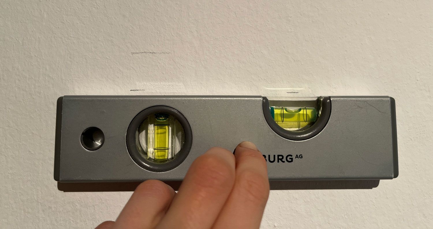 Du kannst mit der Wasserwaage auch noch einmal kontrollieren, ob deine Markierungen in der Waage liegen und diese bei Bedarf korrigieren: